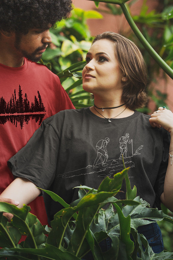 Step into adventure with the One Line Hikers Explore More T-Shirt design. This graphic speaks to trailblazers and pathfinders and features a duo of hikers exploring rugged terrain. This design is a call to the wild for those who love to push their limits outdoors. Lace up your boots, grab this tee, and let the trail be your guide! Available in Brown and Charcoal.